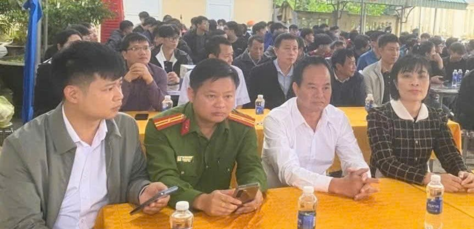 Các đại biểu dự buổi khám sơ tuyển tại xã