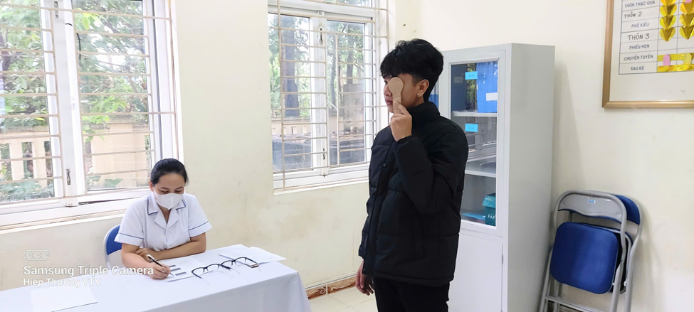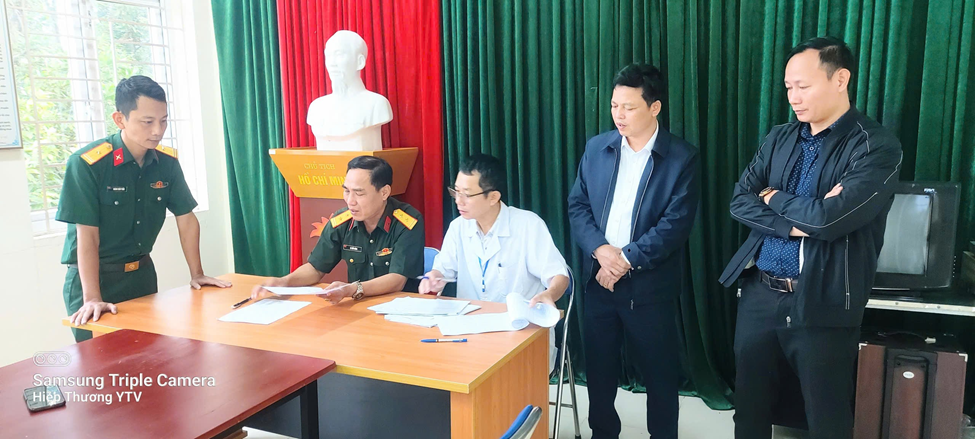 Tại trạm Y tế của xã,Tổ khám sơ tuyển sức khỏe nghĩa vụ quân sự đã thực hiện kiểm tra thể lực như: đo chiều cao, vòng ngực, cân nặng, tim mạch, huyết áp, đo thị lực và kiểm tra một số bệnh lý khác.