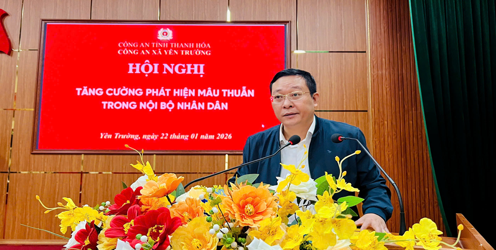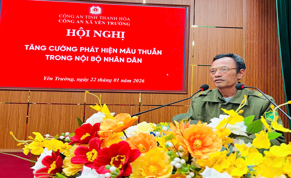 Cũng trong buổi sáng ngày 22/01/2026, Công an xã Yên Trường đã tổ chức Hội nghị chuyên đề về “Công tác phát hiện mâu thuẫn trong nội bộ Nhân dân”. Đồng chí Lưu Minh Hoàng, Phó Công an xã triển khai Kế hoạch của UBND xã “ về tăng cường phát hiện mâu thuẫn trong nội bộ Nhân dân” năm 2026.