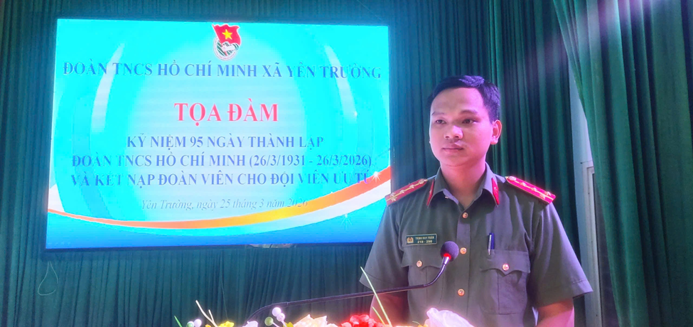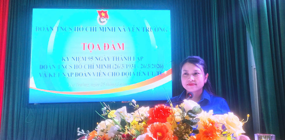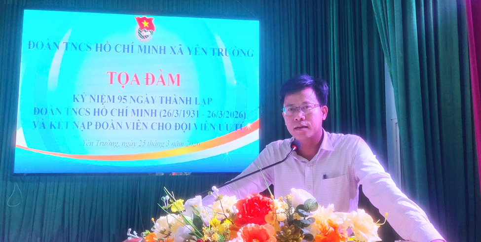 Chiều ngày 25/3/2026, Đoàn TNCS Hồ Chí Minh xã Yên Trường tổ chức tọa đàm kỷ niệm 95 năm, ngày thành lập Đoàn ( 26/3/1931 – 26/3/2026) và kết nạp Đoàn viên cho Đội viên ưu tú.