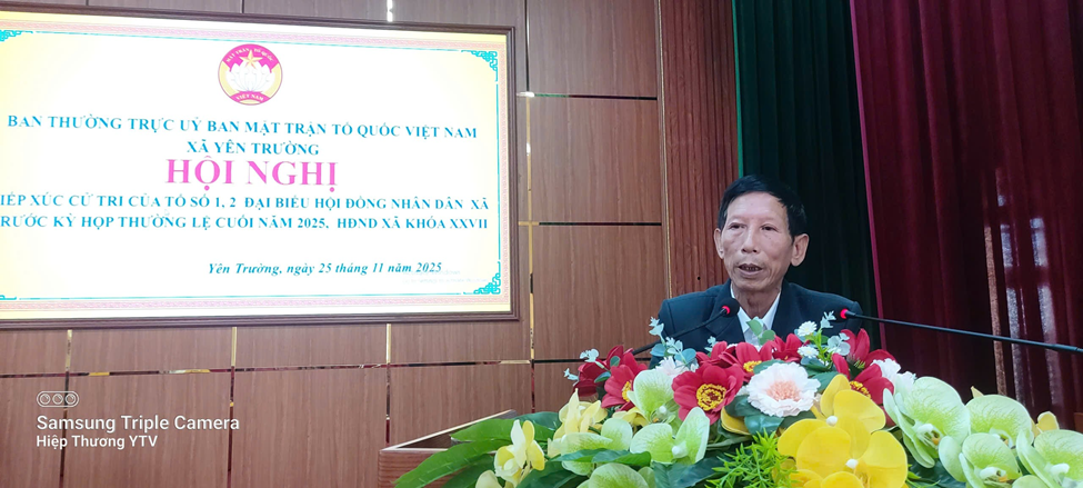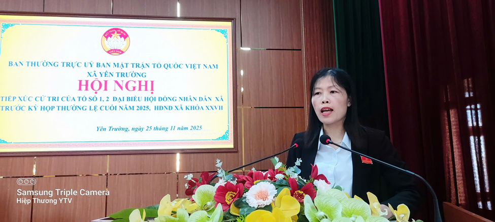 Hội nghị tiếp xúc với cử tri của các thôn thuộc xã Yên Trường cũ, các ý kiến của cử tri tập trung vào một số vấn đề tồn tại ở địa phương, cần được xã sớm giải quyết thỏa đáng như: tình trạng xuống cấp của một số tuyến đường giao thông và kênh mương nội đồng; việc cấp Giấy CNQSDĐ cho các hộ dân có diện tích đất bị thu hồi; công tác bàn giao và đưa vào sử dụng khu bán trú trường Tiểu học Yên Trường….