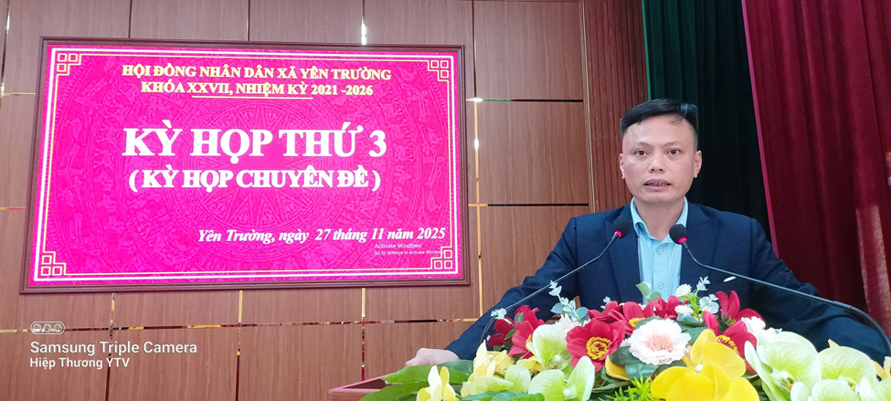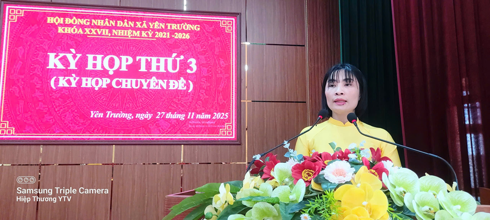 Chiều ngày 27/11/2025, HĐND xã Yên Trường đã tổ chức kỳ họp thứ 3 (Kỳ họp chuyên đề) khóa XXVII, nhiệm kỳ 2021 - 2026.
