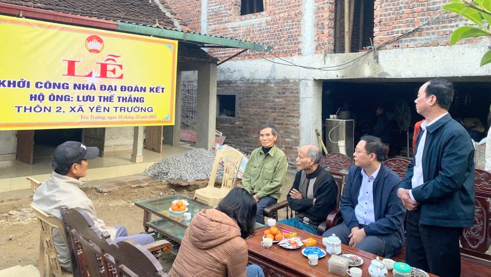 Thực hiện Hướng dẫn số 08/HD-MTTW-BTT ngày 21/8/2025 của Ban Thường trực Uỷ ban Trung ương MTTQ Việt Nam về tổ chức Ngày hội Đại đoàn kết toàn dân tộc năm 2025; Công văn số 2611-CV/TU ngày 03/10/2025 của Tỉnh uỷ về việc lãnh đạo, chỉ đạo tổ chức Ngày hội Đại đoàn kết toàn dân tộc năm 2025. Trong dịp tổ chức kỷ niệm 95 năm Ngày truyền thống Mặt trận Tổ quốc Việt Nam (18/11/1930 - 18/11/2025), Ngày hội Đại đoàn kết toàn dân tộc năm 2025 tại Thôn 2, xã Yên Trường, gia đình ông Lưu Thế Thắng đã được lãnh đạo tỉnh trao hỗ trợ kinh phí làm nhà Đại đoàn kết với số tiền 80 triệu đồng.